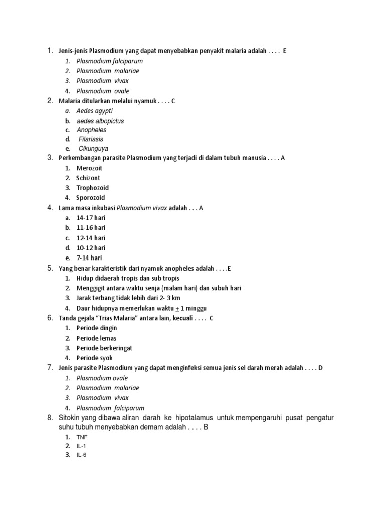Kumpulan Soal Soal Malaria