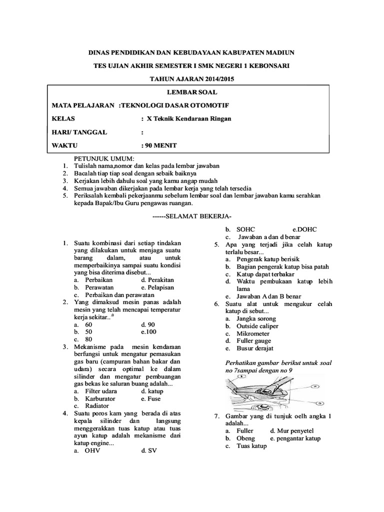 Soal Dan Jawaban Teknik Kendaraan Ringan Bali Teacher