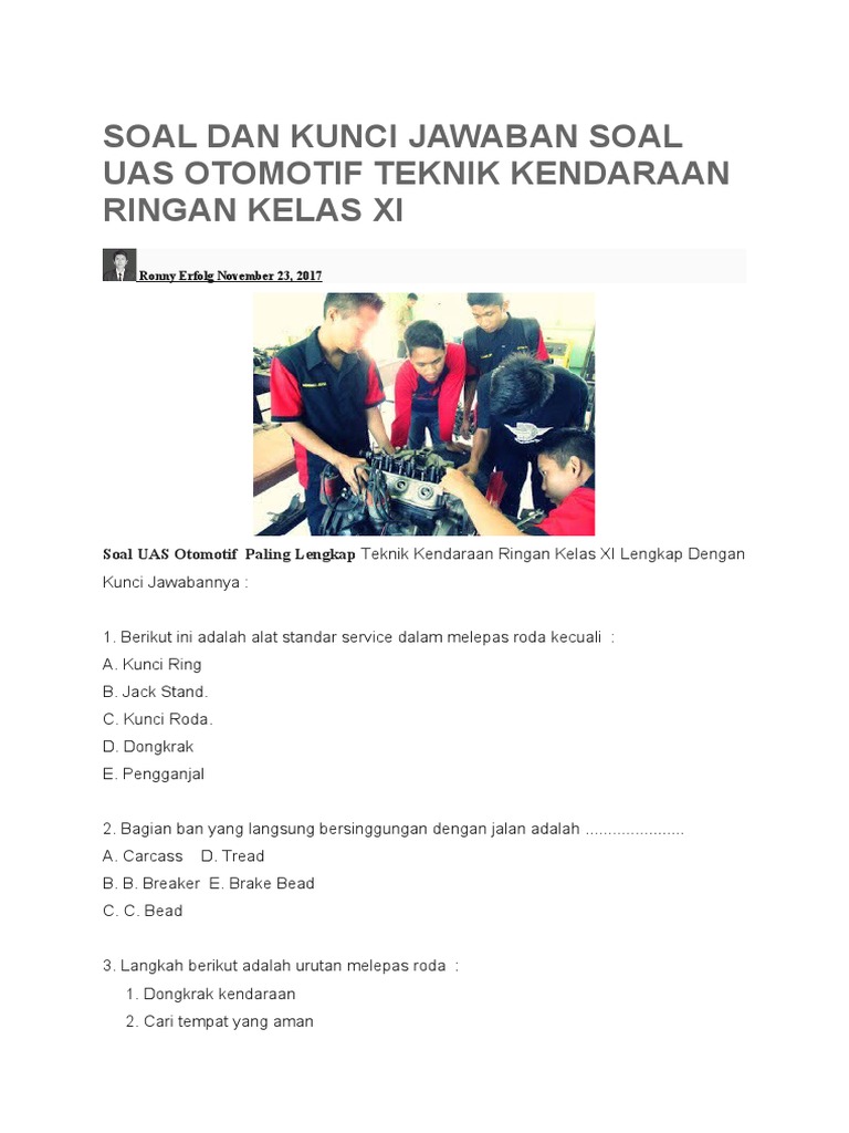 Soal Dan Kunci Jawaban Soal Uas Otomotif Teknik Kendaraan Ringan Kelas Xi