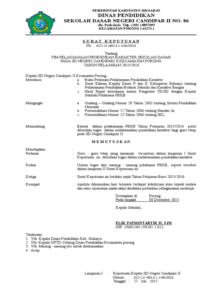 Contoh Sk Tim Penguatan Pendidikan Karakter Di Sekolah Dasar Terkait Pendidikan Cute766